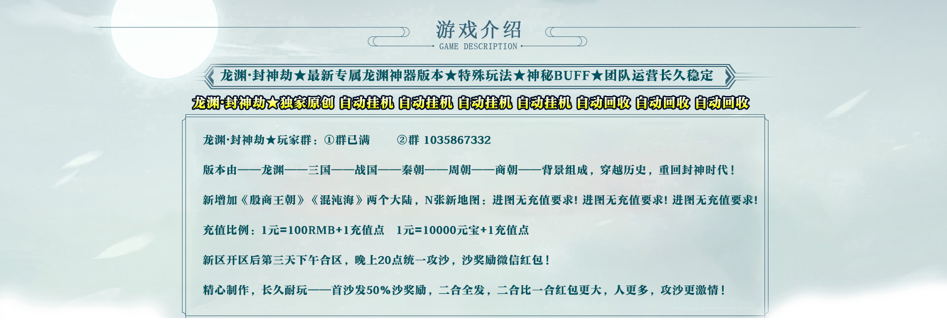 本网站设计及美工由 龙渊·封神劫独家设计制作【免责声明:本工作室不参与游戏开发与运营】